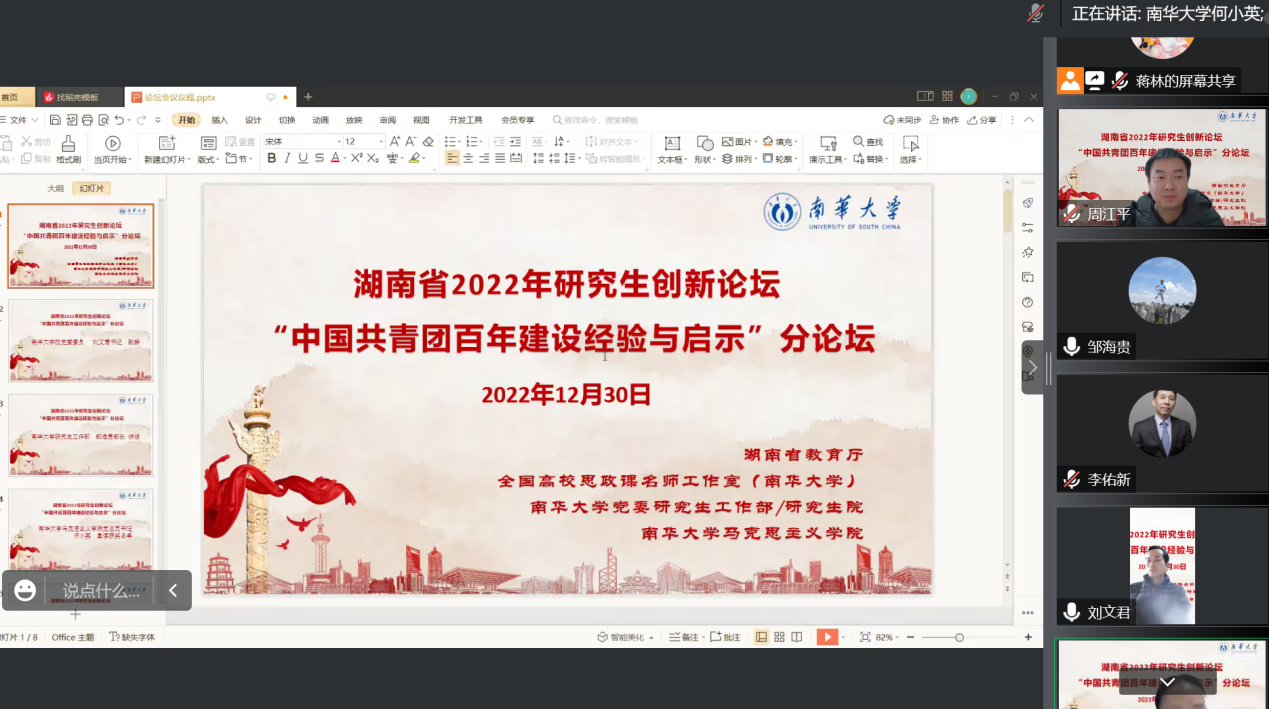 我校成功召开湖南省2022年研究生创新论坛 “中国共青团百年建设经验与启示” 分论坛研讨会