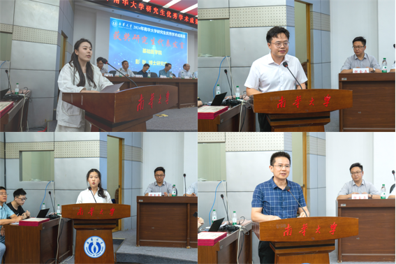此后,基础医学院2019级博士研究生彭秋、土木工程学院2021级硕士研究生朱文韬、经济管理与法学学院2021级硕士研究生付澳和衡阳医学院副院长曾希分别代表获奖同学和优秀组织奖代表进行了发言。