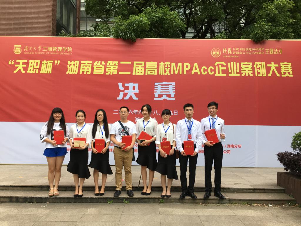 2016年6月19日,备受关注的湖南省第二届高校MPAcc企业案例大赛决赛于湖南大学工商管理学院落下帷幕。beats365唯一官方网站会计硕士不负众望,经过多轮激烈角逐,由2016级研究生郭珈臣、刘擎雨、廖芯郡、高庆、李姗姗和肖扬等6名同学组成的Archers团队在湖南省第二届高校MPAcc企业案例大赛决赛中荣获团队二等奖,经济管理学院李冬生、郭丹老师被评为优秀指导教师,郭珈臣同学在复赛阶段和总决赛阶段分别获得“最佳表现个人奖”和“最佳个人风采奖”。由李冬生老师指导的“Hunters”团队(成员包括财管131班龚燕萍、金宏杰、会计132班胡潇和会计137班宋宇珂等4位同学)在本科生组比赛中,获得A组(一本高校及具有会计硕士点的高校)唯一的一等奖。