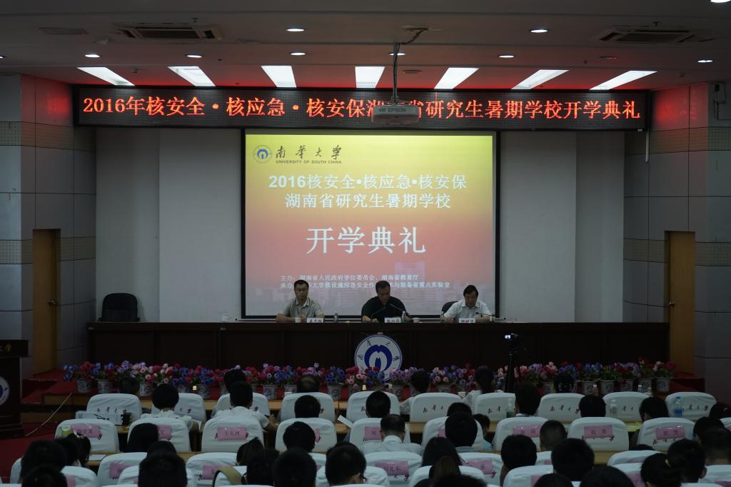 7月8日上午,2016年核安全•核应急•核安保湖南省研究生暑期学校开学典礼在beats365唯一官方网站图书馆学术报告厅隆重举行。校领导张灼华校长、姜志胜副校长和核设施应急安全作业技术与装备湖南省重点实验室主任邹树梁教授出席典礼,相关学院院领导、研究生院领导、老师和暑期学校110名学员参加了本次开学典礼。典礼由邹树梁教授主持。