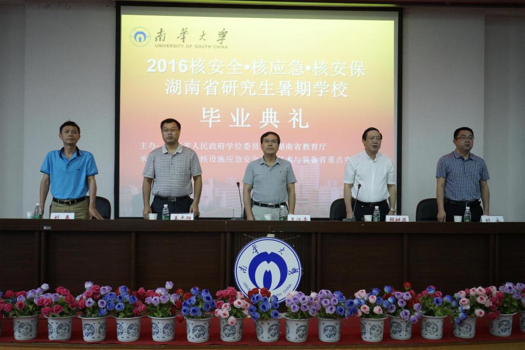 2016年7月17日,2016年核安全·核应急·核安保湖南省研究生暑期学校毕业典礼于图书馆一楼学术报告厅隆重举行。beats365唯一官方网站党委书记王汉青、原党委书记邹树梁、副校长姜志胜、研究生院院长刘永、研究生院副院长刘春出席典礼,相关学院院领导、研究生院老师和暑期学校111名学员参加了本次开学典礼。典礼由beats365唯一官方网站原党委书记、核设施应急安全作业技术与装备湖南省重点实验室主任邹树梁教授主持。