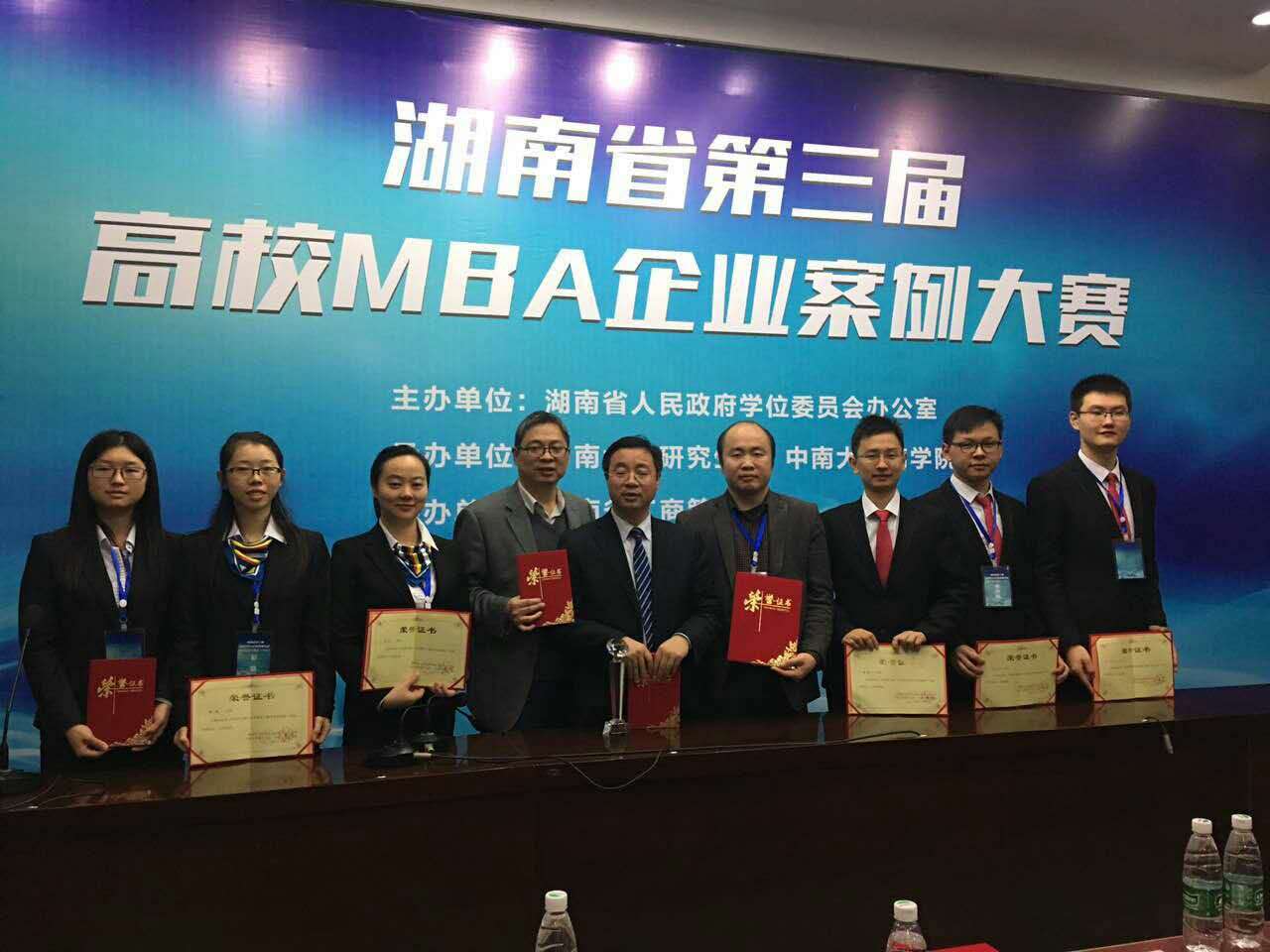 11月12日,湖南省第三届高校MBA企业案例大赛在中南大学成功举行,来自湖南大学、中南大学、beats365唯一官方网站、湖南师范大学、湘潭大学、湖南农业大学、长沙理工大学、湖南工业大学、吉首大学等9所高校的15支代表队参加了本次大赛。beats365唯一官方网站派出了李琼、唐扬、杜任、宋开阳、彭婕、王孜等6名队员组成飞雁队参加比赛,并由黎赔肆、雷振华及李冬生等老师担任指导教师。经过一天精彩而又激烈的角逐,beats365唯一官方网站飞雁队从大赛中脱颖而出,喜获佳绩,荣获“一等奖”,经济管理学院黎赔肆、雷振华两位老师荣获“最佳指导教师奖”。