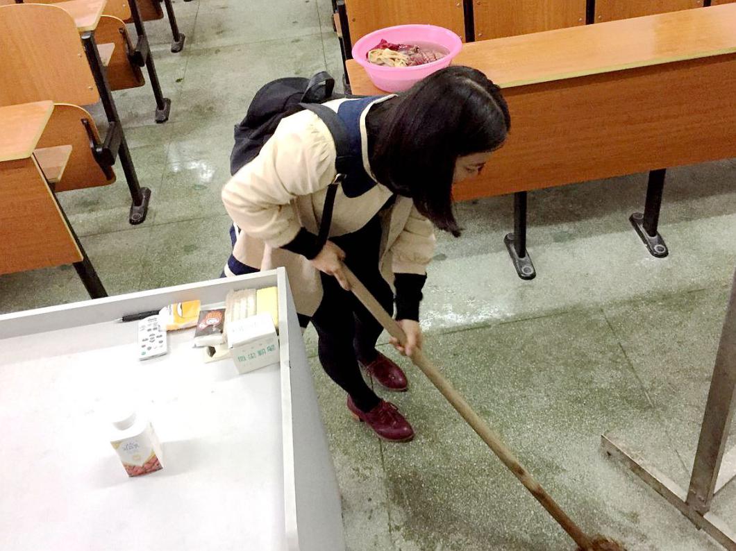 入党积极分子进行义务清扫