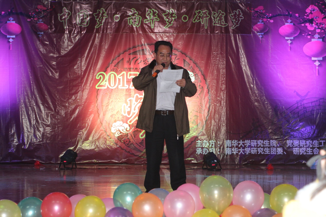 晚会伊始,研究生院院长谢水波发表了致辞,谢水波回顾了2016年研究生院的各项工作,并对所取得的各项成就表示热烈的祝贺和衷心的感谢。他总结到,2016年研究生院各项工作成效显著,强化了研究生培养过程管理,改革人才培养模式顺利推进;优化学位点布局,推荐学位点申报与动态调整工作圆满完成;推进研究生学术能力建设,提高研究生创新能力培养取得重大进展;师资队伍建设稳中求进。接着,谢水波对beats365唯一官方网站研究生院在2017年提出新的工作期望,期待研究生院来年再创佳绩并对全体师生致以新年问候和节日的祝愿。