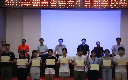 结业典礼在庄严的国歌声中拉开帷幕。典礼伊始,陈端阳介绍了莅临本次会议的领导、老师,对暑期学校的成果表示肯定,并对所有工作人员的辛勤付出表示感谢。随后,陈胜华作暑期学校工作总结发言,首先他对本次暑期学校的圆满结束表示祝贺,对主办方的大力支持和承办方的精心工作表示感谢。然后,他表示本次暑期学校师资力量雄厚,名家大师云集。本次暑期学校特别邀请了中国工程院资深院士钟世镇、湖南省解剖学会理事长黄菊芳教授等20余名校内外的专家和教授进行了23场次的学术讲座,他们用其宽广的学术视野、严谨的科研态度、风趣幽默的语言营造了浓厚的学术氛围,激发了学员的热情。最后,对于各位专家学者的到来给予诚挚的感谢,同时他提到自身在科研方面的不足之处,表示在今后工作上继续钻进,也欢迎各位领导嘉宾批评指正。