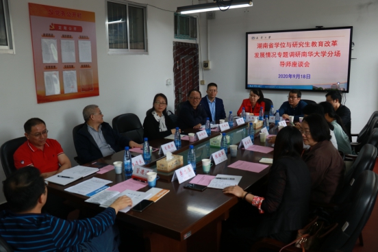 我校研究生院、研究生工作部、财务处、科研与学科建设部等职能部门负责人(或副职)、部分培养学院院长(或副院长)、12名导师代表与22名研究生代表参加专题调研;衡阳师范学院学科建设与研究生处和财务处负责人、部分培养学院院长(或副院长)参加专题调研。