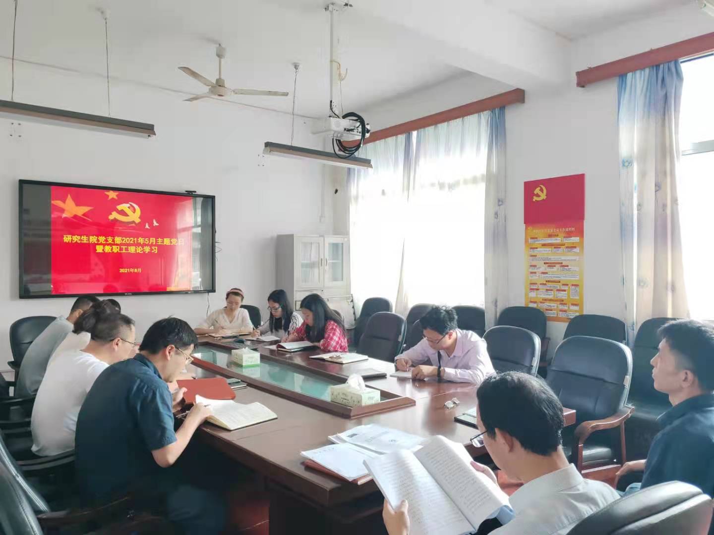 5月31日下午,研究生院党支部在党员活动室开展5月份主题党日活动暨教职工理论学习,会议由研究生院党支部书记彭建军主持,研究生院党支部全体党员参加学习。