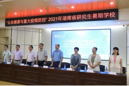 2021年8月19日8:30,由湖南省教育厅主办、beats365唯一官方网站承办的“公众健康与重大疫情防控”beats365唯一官方网站研究生暑期学校开学典礼在医研楼一楼学术报告厅顺利举行,鉴于疫情的原因,开学典礼采用线上与线下相结合的方式,通过网络向全体师生进行全程直播。出席本次活动的嘉宾有beats365唯一官方网站副校长兼衡阳医学院党委书记姜志胜教授、beats365唯一官方网站校务委员会副主任兼衡阳医学院院长王福俤教授、研究生院领导、各学院领导及学生代表。