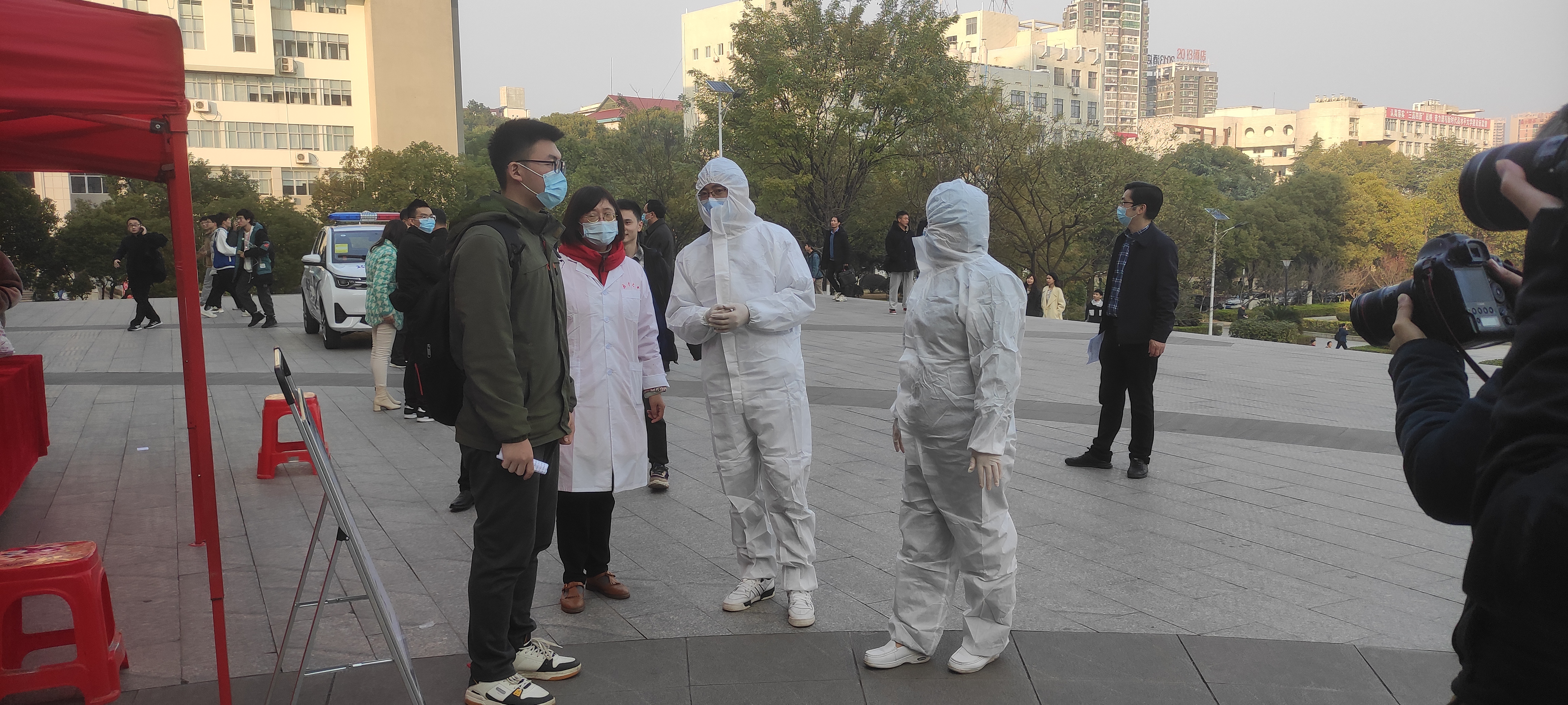 演练同时安排相关职能部门现场办公,落实高通量高效测温设备确保考生“随到随检随进”,确定我校考生与涉考工作人员核酸检测事宜,协调地市医疗卫生部门聘请专业人员进行防疫培训,配齐手持测温仪、水银体温计等测温设备和防护服、口罩、一次性手套等防护防疫物资的保障,协同其他考点为考生顺利考试提供便捷服务。