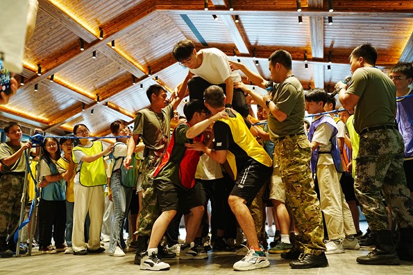 最后,“跨越生命线”活动也将本次团建推向最高潮,整个过程中,全体新生齐心协力、甘于牺牲,最终完成了这一艰难的挑战。同学们用实际行动诠释了一方有难 八方支援的团队精神。
