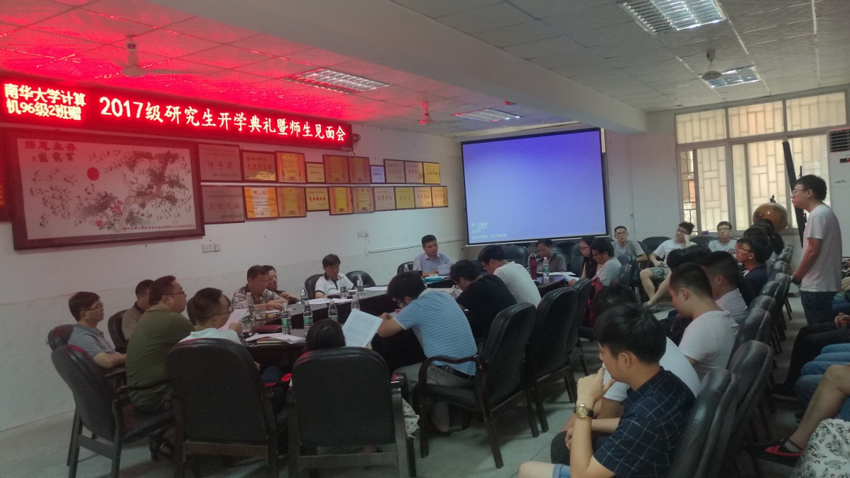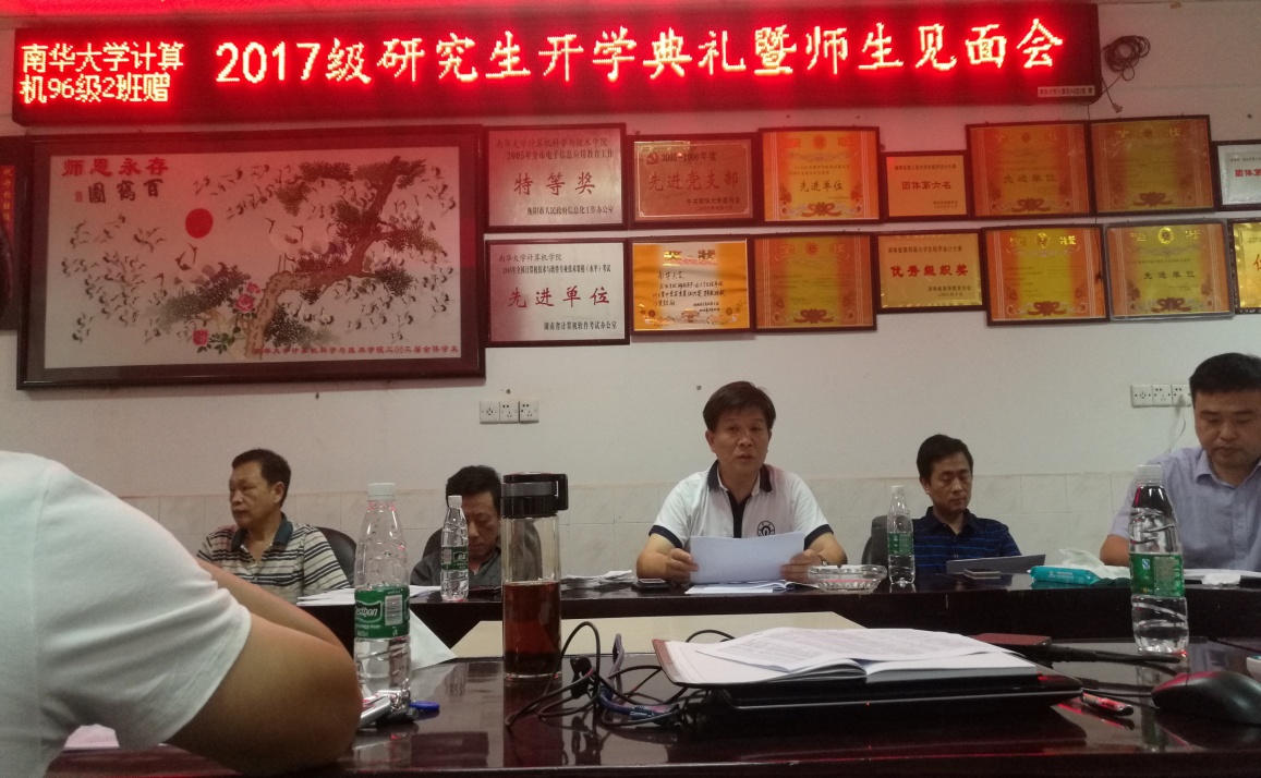 9月10日上午,计算机学院2017级研究生新生开学典礼暨师生见面会在八教113会议室隆重举行。校党委副书记、计算机学院学科带头人阳小华,计算机学院党委书记肖基毅、党委副书记卢清华,计算机学院院长刘振宇、副院长何啸峰、副院长万亚平,以及全体研究生导师出席会议,2017级全体研究生参加了会议。会议由万亚平副院长主持。
