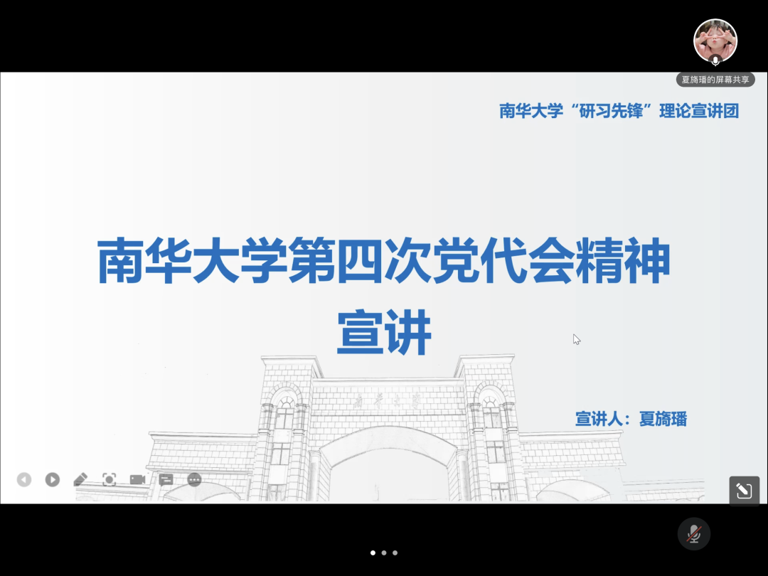 本次宣讲活动的开展,精准传达了党代会精神,凝聚了全体党员干部和广大师生奋进力量,激发了作为一名研究生的责任和使命,有利于每位南华学子不断增强学术自信,在学校打造特色高峰学科群的建设中充分发挥主力军作用,做堪当大任的新时代青年!