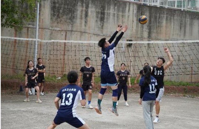 汗水参杂着快乐,狂野伴随着激情。队员们使出浑身解数,奋力拼搏,现场的气氛极具攀升,各个学院的排球队员激情澎湃,展现着闪耀的坚强拼搏意志。场下的啦啦队员们为场上的球员们呐喊助威!在此起彼伏的助威声中,比赛也越发精彩。