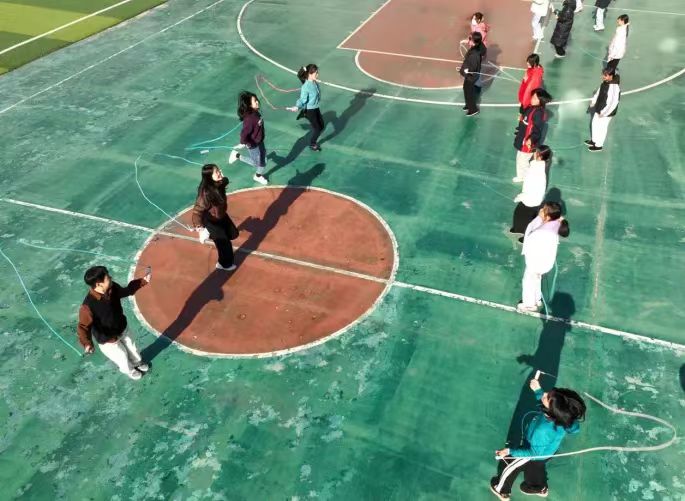 座谈会后,支教团引导孩子们做热身及排球学习,并细心讲解排球动作要领,双方队员各施球技,一个个精彩垫球、传球、扣球、拦网、防守动作一气呵成。同学们在操场上盯着排球运动的轨迹奔跑,每一个动作都展现了他们奋发向上 朝气蓬勃的精神风貌,欢乐的笑声充盈着整个操场。