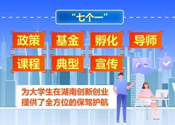 "七个一"创业扶持体系,通过政策保障、基金支撑、孵化赋能、导师引航、课程培育、典型示范、宣传推广七大维度协同发力,构建起覆盖创业全周期的服务矩阵。该体系以"留湘来湘"为战略导向,聚焦大学生创业痛点精准施策。