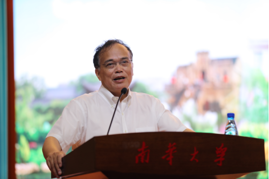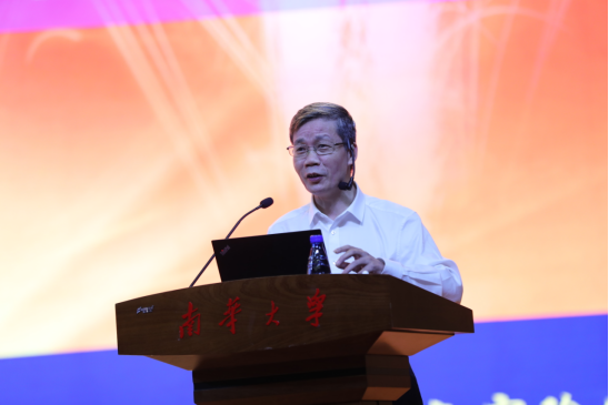 5月21日下午,学校在南华礼堂举行陈国强院士学术报告会。上海交通大学原医学院院长、原副校长陈国强院士,国家儿童医学中心(上海)主任江忠仪,党委书记高山,校长张灼华,党委副书记阳小华,副校长郑卫民、姜志胜、雷小勇、于涛、夏昆,党委委员刘文君,原衡阳医学院院长杨永宗出席报告会。