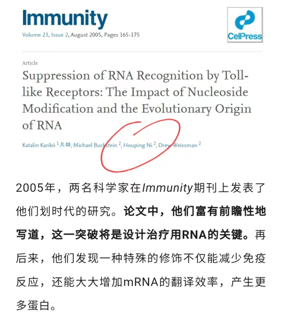 我于1998年进入宾夕法尼亚大学(University of Pennsylvania)医学院,加入Dr. Weissman (魏斯曼博士)团队至今,并有幸与Dr. Kariko(考里卡博士)并肩工作。我一直在从事有关mRNA用于治疗传染病的研究。mRNA 是一种不稳定的物质,非常容易降解,并且会引起内源性炎性反应。我们在2005年发表的论文中报道了一个特殊修饰的mRNA,其不仅能减少免疫反应,还能大大增加mRNA的翻译效率,产生更多的蛋白。我们思考如何把mRNA用于人体内,去防治传染病。mRNA疫苗对于保护人类健康的意义不仅在于征服新冠,还为征服其它重大疾病的研究打开了一扇门。